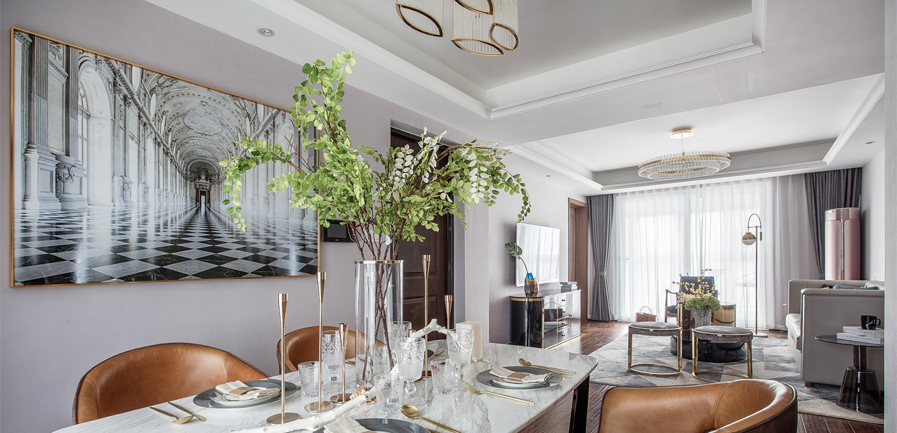 整套作品的画作都以有景深的建筑为主题去扩宽视野,我们所要给予居住者的是一个个性与品位兼具的生活空间,因此,在遵循室内空间原有格调的基础上,我们从实用主义出发,将新装饰主义风格用现代独特审美理念及手法进行演绎,让欧洲古典文化历经时间的沉淀与雕琢再现艺术品质与精髓,绽放出古典、华丽、艺术与时尚的多重美丽,赋予生活全新奢华内涵。