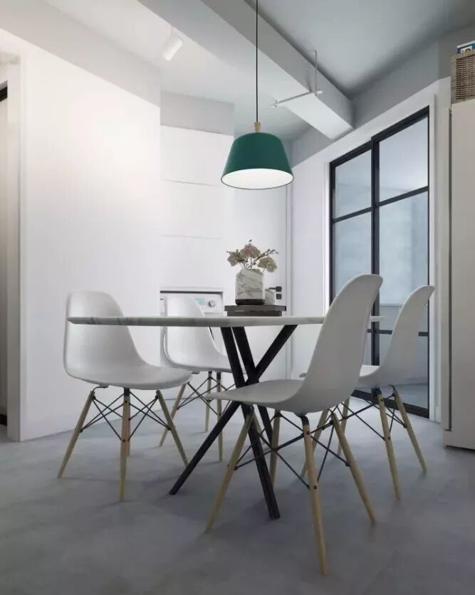 水泥灰的地面搭配留白的墙面,不加修饰的顶面呼应玄关吊顶。