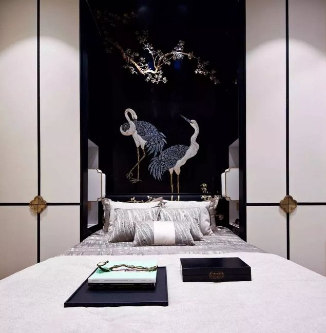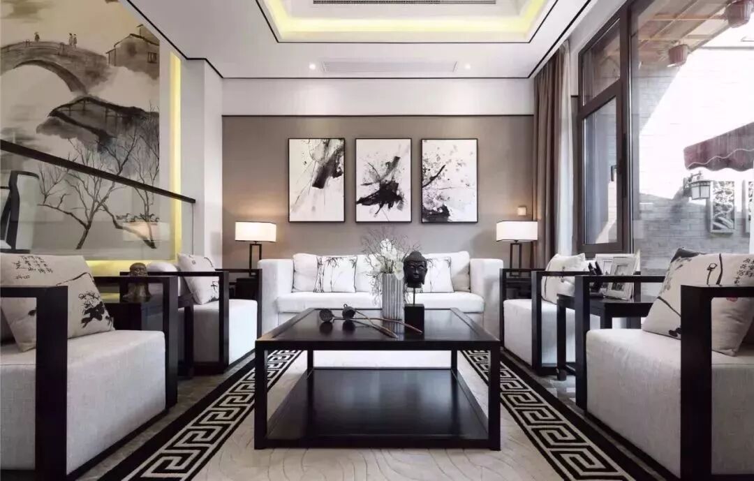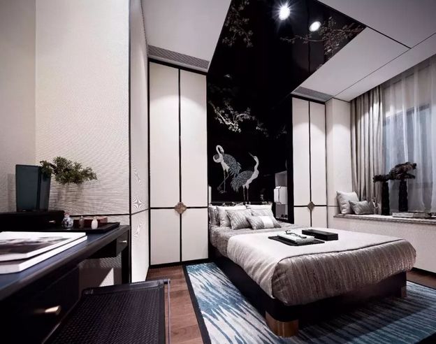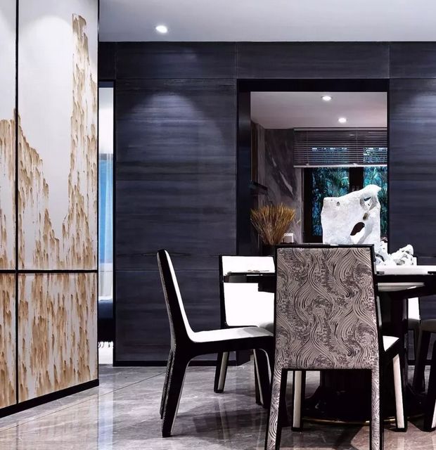 它的搭配要点是:黑色作为背景配搭新中式家具装饰,介入白色,面积可大可小,但视感要均衡。在光与影的交错间,将魅力释放。