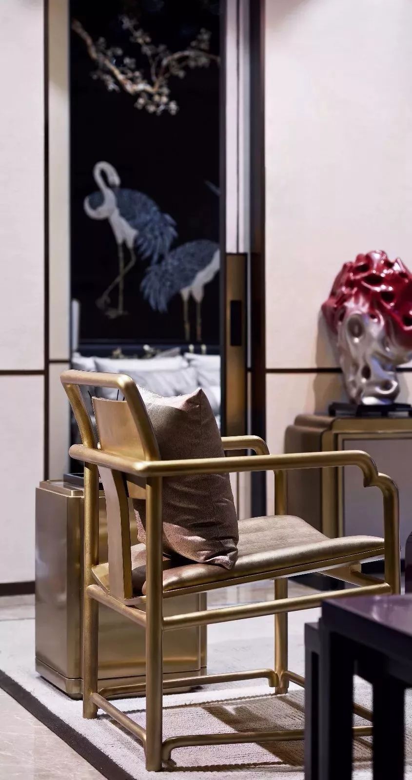 将红色与新中式结合,可以将传统文化的精髓最大化表达的同时,也带着主人的殷切希望为空间注入一份明快与活跃,令空间更加引人注意。