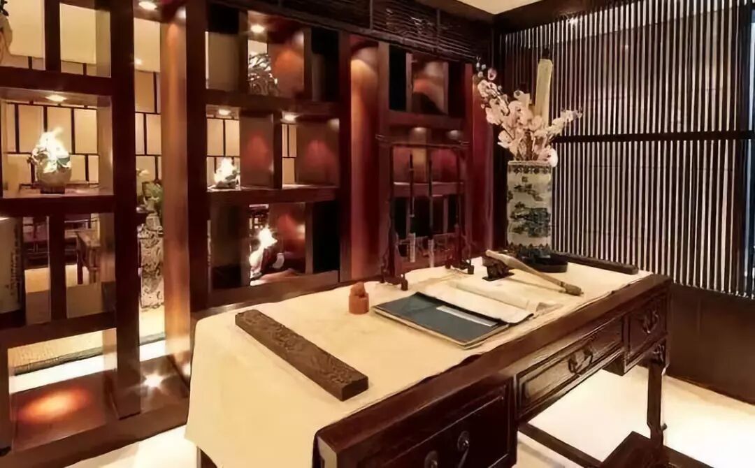 中式书房,典雅大方,更具书香气。可以听素琴,阅金经,任丝竹乱耳,不怕案牍劳形。