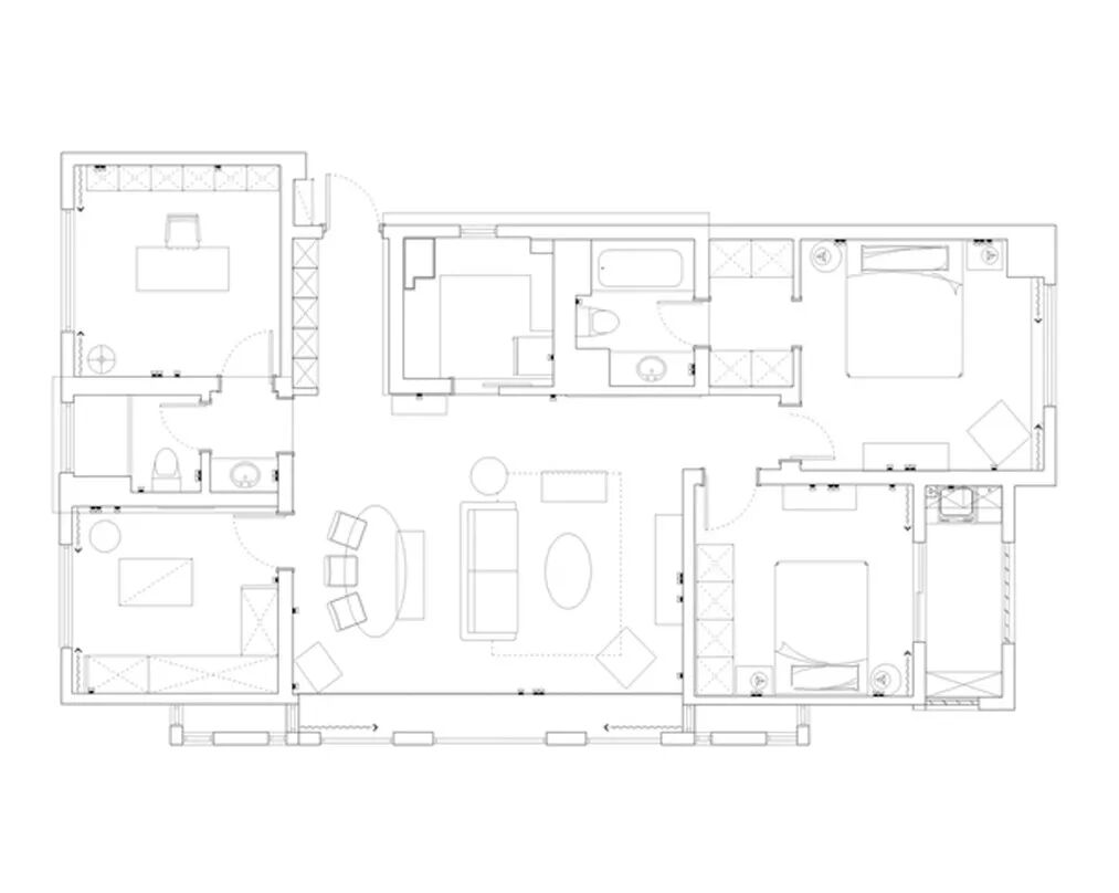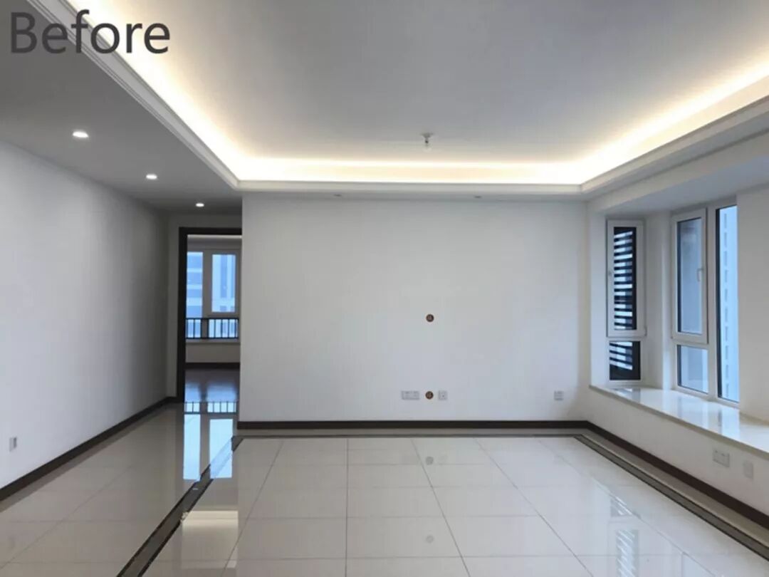 公共区域是一个敞开式的布局,也是几位女生重要的活动区域,所以一定要设计的明亮、宽敞,并营造出慵懒的氛围,我们将餐厅临靠在客厅旁边,席地而坐,或者慵懒躺在沙发上,看电影、讨论美妆等,阳光透过窗纱,岁月静好。虽没有刻意划分客厅与餐厅的区域,但灰色沙发在视觉上形成一道分界线,在没有了承重墙的阻隔,也没有刻意摆放的靠几,“随心所欲”的感觉在各个空间穿梭,每个角落都有光的身影,清新的空气填满每个缝隙,可口的美食在心间融化,一间用闺蜜情制作的房子,充满温馨的画面,静看四季交替,风景变换,享受不一样的自由。