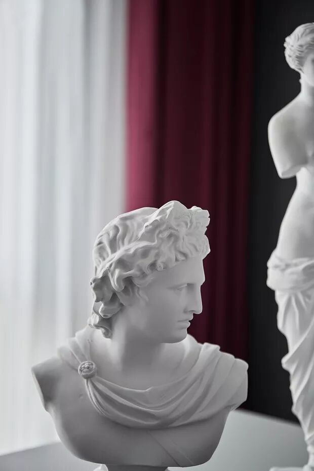 头像雕塑营造了浓厚的艺术氛围,提升了整个空间的高级感。
