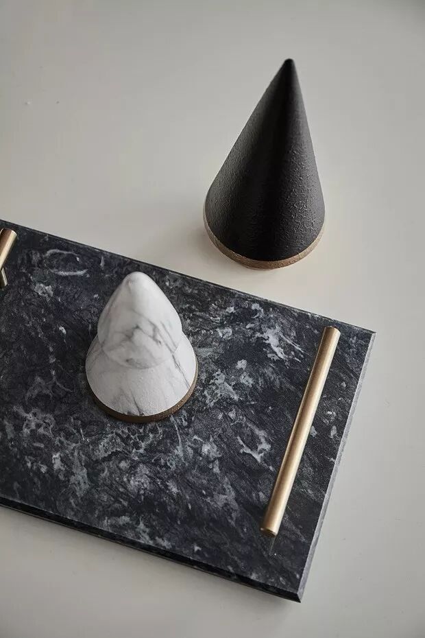 茶几小景,几何形状的装饰物,与灯具材质相呼应。