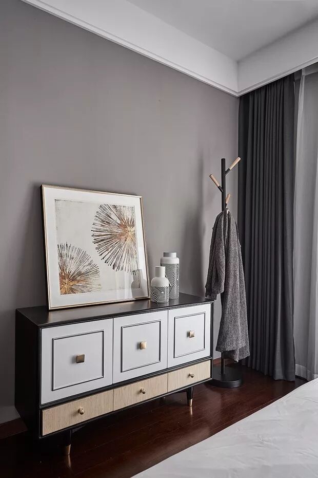 床尾柜的设计也提供了很多方便,存放一些简单的生活物件,查找和整理也更加方便,显得更加有条理,摆放喜欢的艺术品,提高了生活的品质。