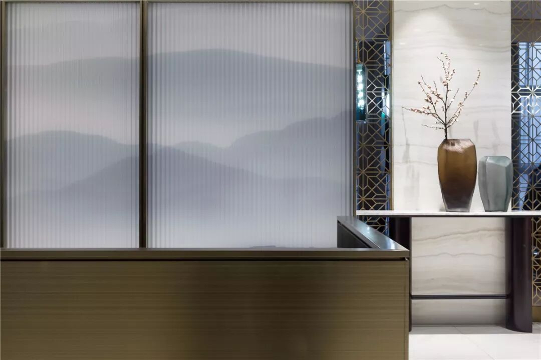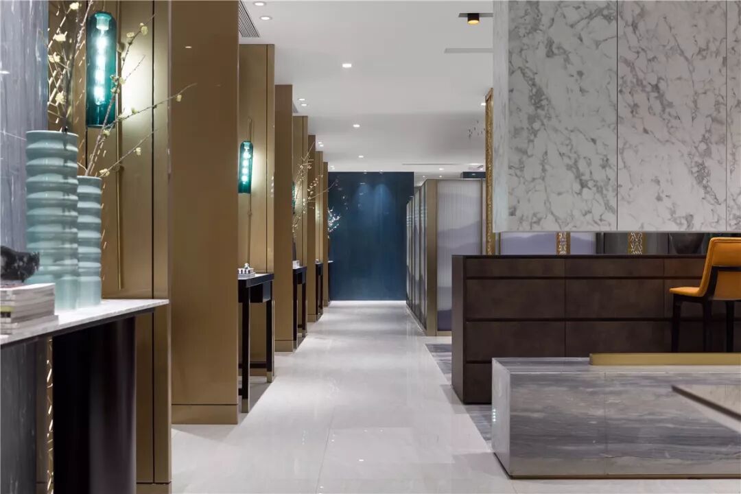 这里不仅有木作的传达,还有真丝、绢布的柔软,砂岩、大理石的坚硬,与玻璃、皮革和光线等元素的加持,材料全新的组合与定义。千百种元素在这个空间相遇碰撞,完成元素与空间的化学反应。让精致与优雅可以透过空间传达给每一位到访者。