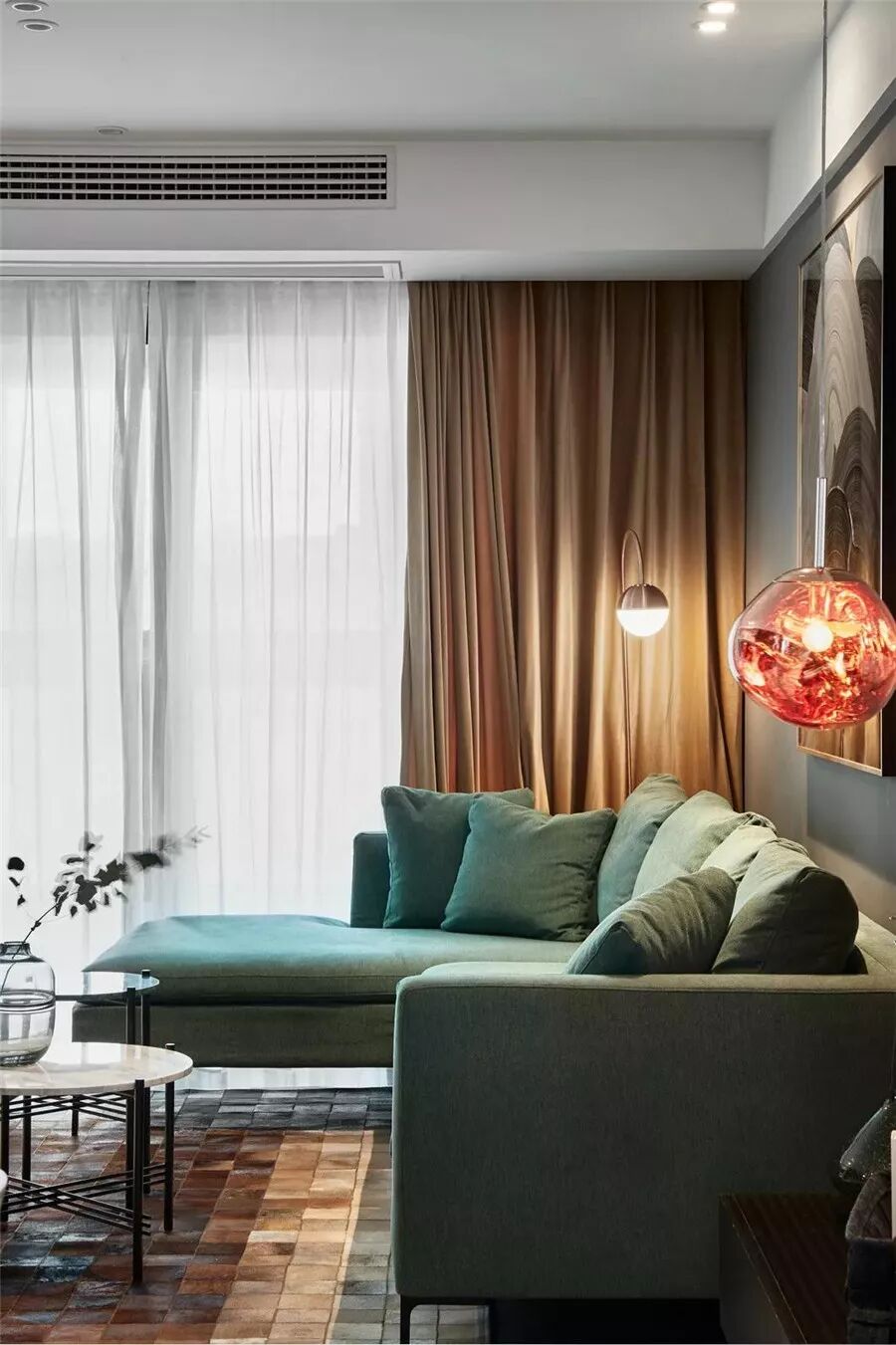 搭配独特的火红色吊灯