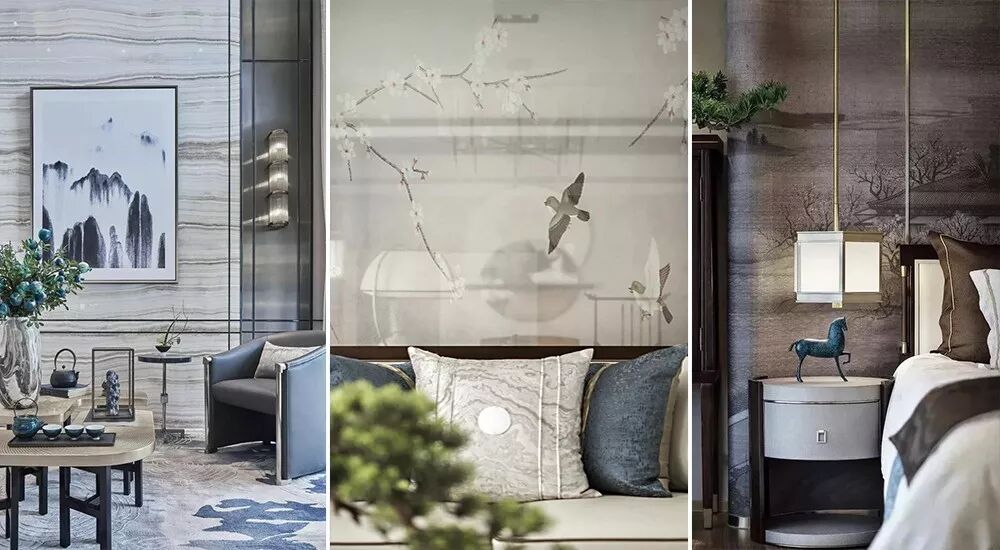 在选材和装饰方面,新中式风格也更加贴近于生活,花鸟、虫鱼、盆景、山水等“自然符号”都是最为常见的设计元素。
