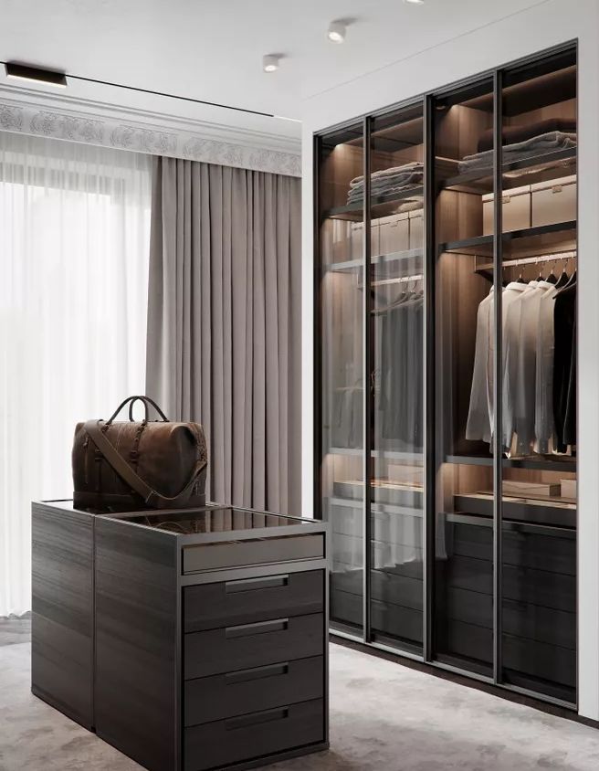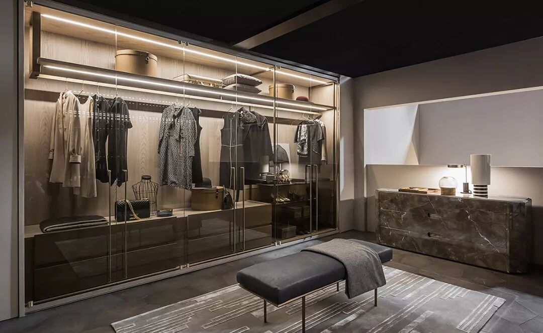 如果想让收纳空间兼具独立性、通透性和协调性,有色玻璃衣橱是最完美的选择。