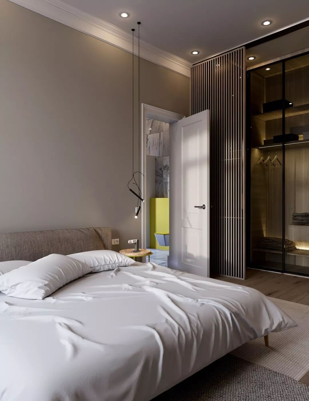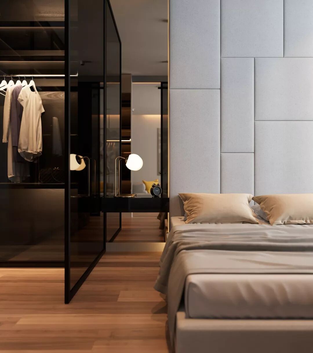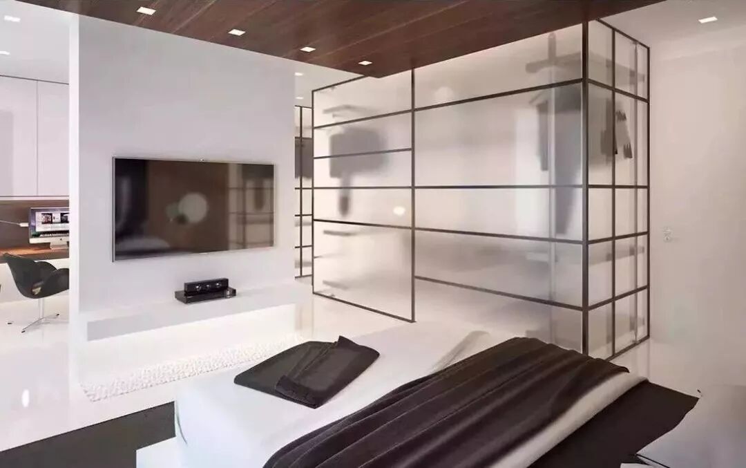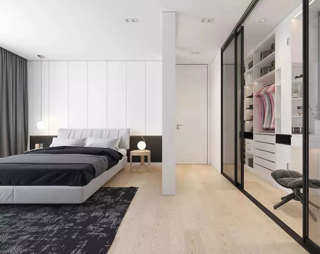 磨砂玻璃衣橱有着别具一格的朦胧美,让柜内空间不完全裸露。