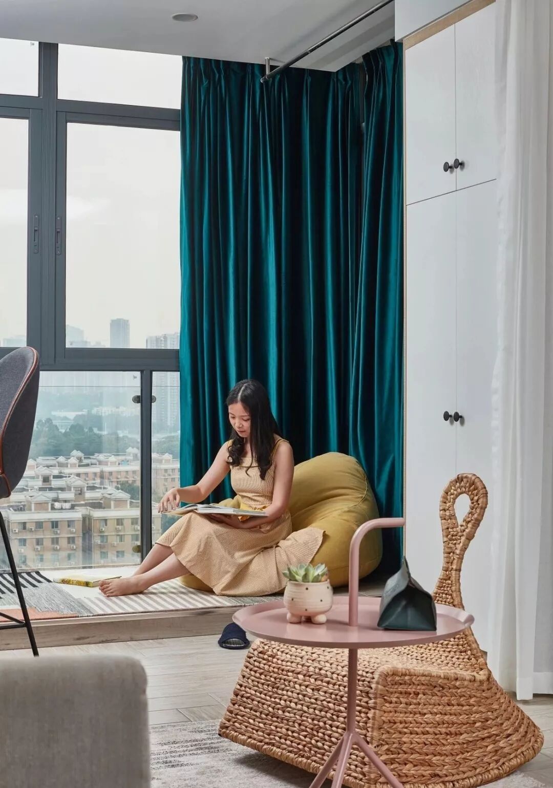 ▲摆上布艺懒人椅,坐在这里晒太阳看书,日子过得真舒服。