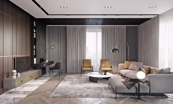 简洁灰色与轻奢金色元素的结合运用,体现出精致的细节和别样的质感,内敛低调而高贵奢华,使得整个空间都变得无比精致起来。一片宁静中,用看似灰暗的中间色调来表现物象,一切不张不扬,静静地释放着最朴实的震撼力和直达内心的优雅。