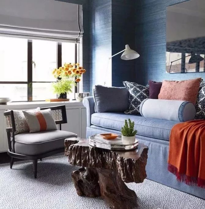 灰打造的世界,像是初晓时分的城市,烟火朦胧,清冷理性。在其中分散性的加入亮蓝色彩,装饰在挂画、靠包以及地毯的印花图案上,清丽的色调穿透性的直面而来,带来一份快意与闲适,也令空间的氛围如涟漪般带着轻微的波动,展现着一分优雅与灵秀。