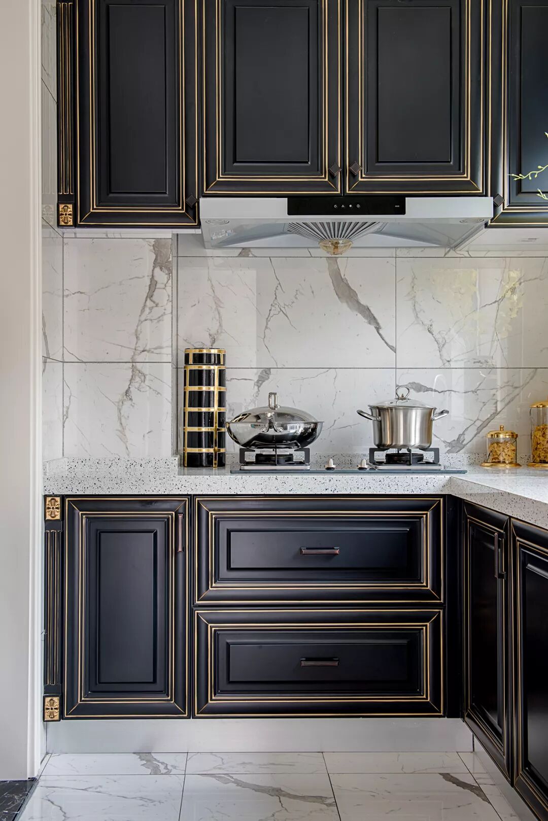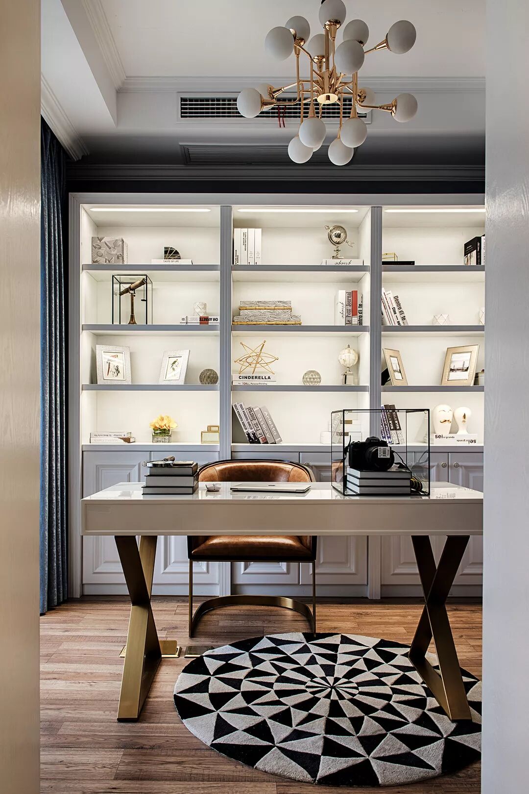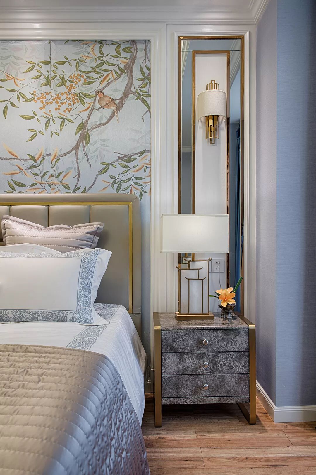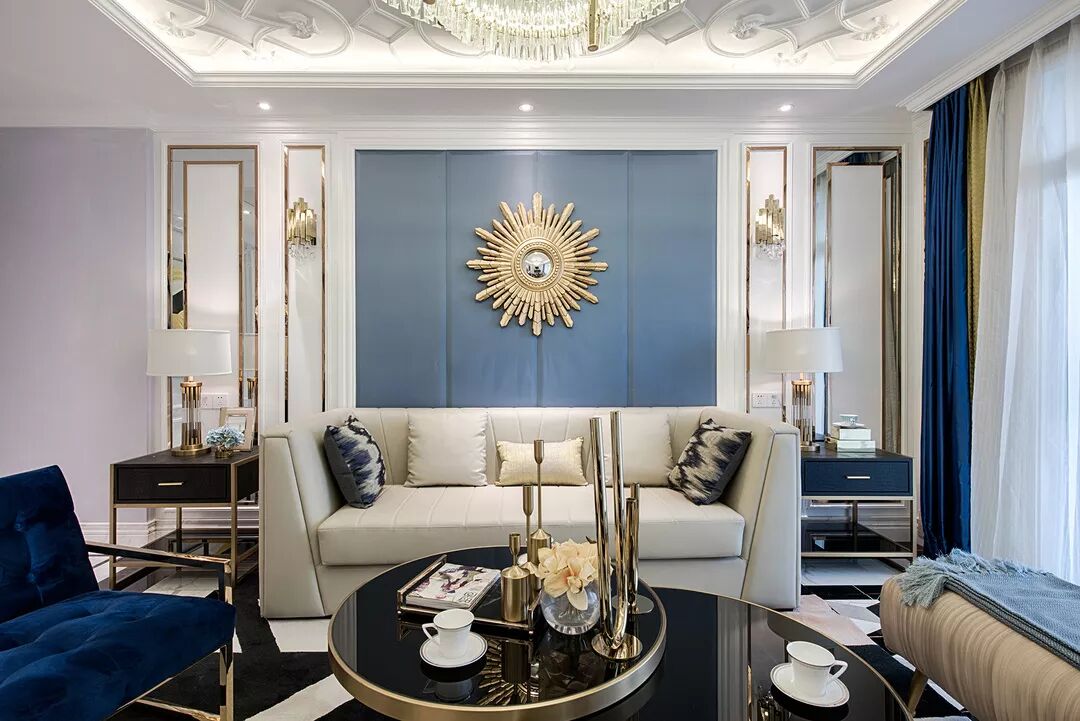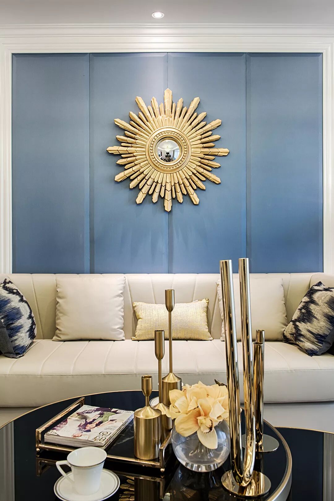 从被称为法国品味的洛可可 到取代它的新古典主义 法国以及整个欧洲 世界 都在不停的更换着时代的口味 许是吃了太多甜腻繁复的重口味 现代人更偏好于轻 轻度的优雅 轻度的奢华 更贴近现代的审美 也更贴近现代的生活方式 真正的法式优雅,属于高尚的格调和内敛的情怀 而这植根于法国人骨子里的罗曼蒂克 任何表象的花哨与浮华都无从表达。 轻度·奢雅 本案是一套精致的浪漫法式案例 在风格上设计师摒弃传统法式的繁复冗杂 采用淡雅的空间色调结合几何线条 打造出一个法式轻奢主义的空间 客厅中采用了16年潘通年度色 静谧蓝 配合轻奢金 明亮淡雅 方形纹样深浅色交织地板 搭配担当重色功能的 黑色茶水案几 孔雀蓝金属方边单椅 让空间色调在和谐统一的基础上 更具视觉层次感为空间平添几许温度与生气 曲线 传统法式风格中 随处可见的设计元素 在这个现代轻奢空间中 也得到延续使用 圆形吊灯 U型烛台 甚至曲线纹样的墙面装饰画 使整个设计变得刚中有柔恰到好处 轻度·蓝金 整个空间中都贯穿着蓝色 而最温柔的那一抹就在主卧室中 无论是睡前的思考还是阅读 偏粉的蓝色在空间中让人沉静下来 安静的享受每一天的睡前时光 ▼▼▼ 次卧则选用了玫瑰金色调 灰褐色随着玫瑰金 低调优雅 几何切割的钛金饰物 是空间中的亮色点缀 也带来空间变化的连续性 舒适感与美观并存 ▼▼▼ 餐厅中同样沿用了整体的蓝金色调 半开放式厨房 配以几何形装饰 白色大理石砖 敞亮干净 半开放式也符合当下的社交需求 不再是传统的闭门造车 让家人之间有了更多的交流 ▼▼▼