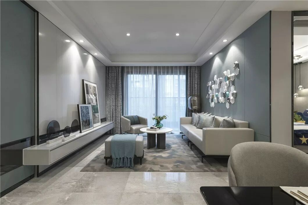 本案设计师凝萃青山湖的人文气息,将森林湖水的妙趣横生纳入空间。通过色彩、质感、功能、艺术的家具搭配,将日常生活的闲适乐趣,大胆地以戏剧方式展开,彰显居室格调。