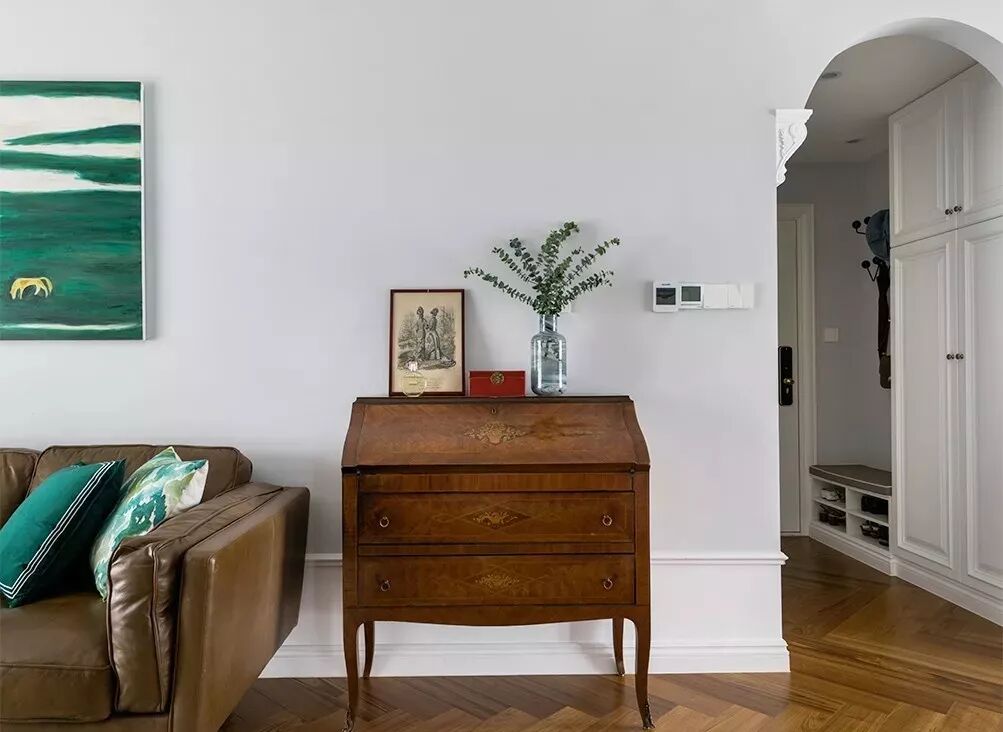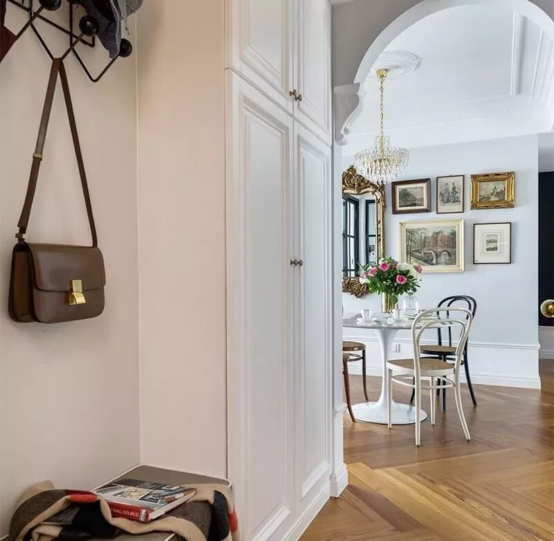从来没想象过把家装修成法式现代风,竟然会如此惊艳。入户玄关处,做成了地中海风格中常见的拱门,增加了房间的层次感和美感。