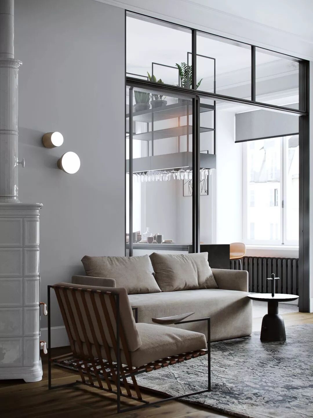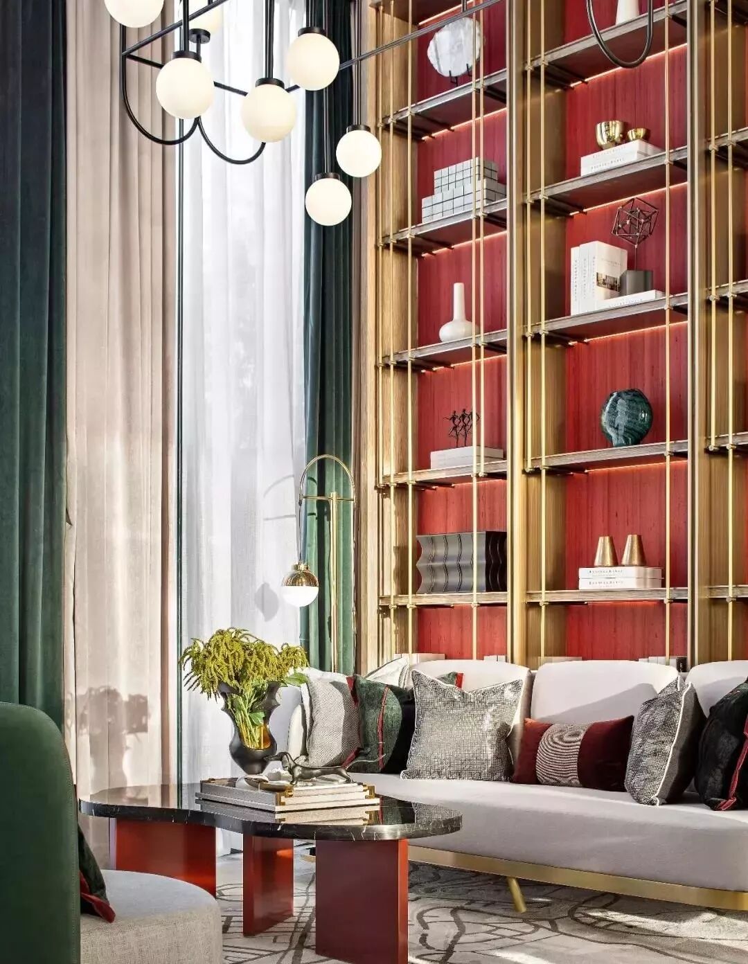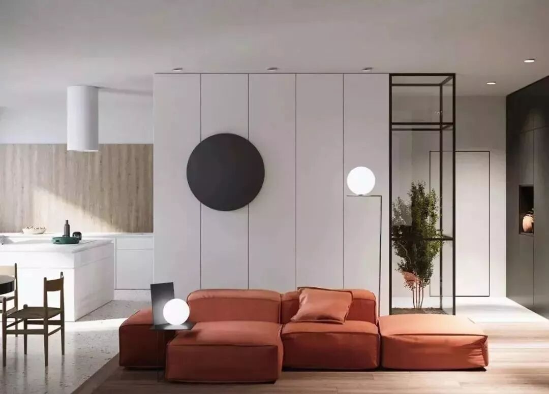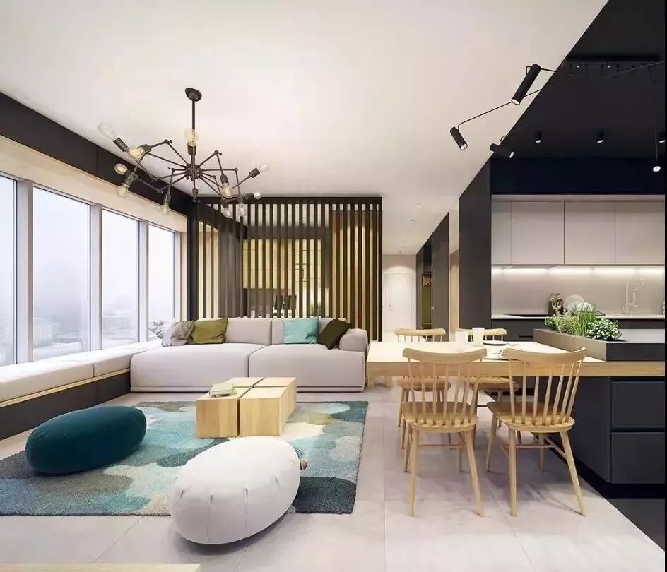 用书架/博物架做背景墙还可以作为隔断来使用同时具备装饰和实用的双重功能大幅的艺术画或者摄影照片搭配合适的照明别具格调有品位的艺术画能提升整个家装的气质也有沙发背景墙悬空不靠墙的留出一个过道将装饰或者隔断装饰靠墙显得更有层次感