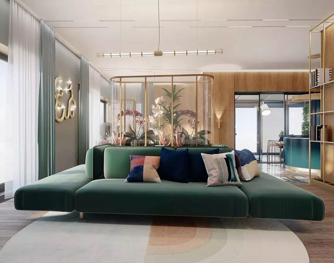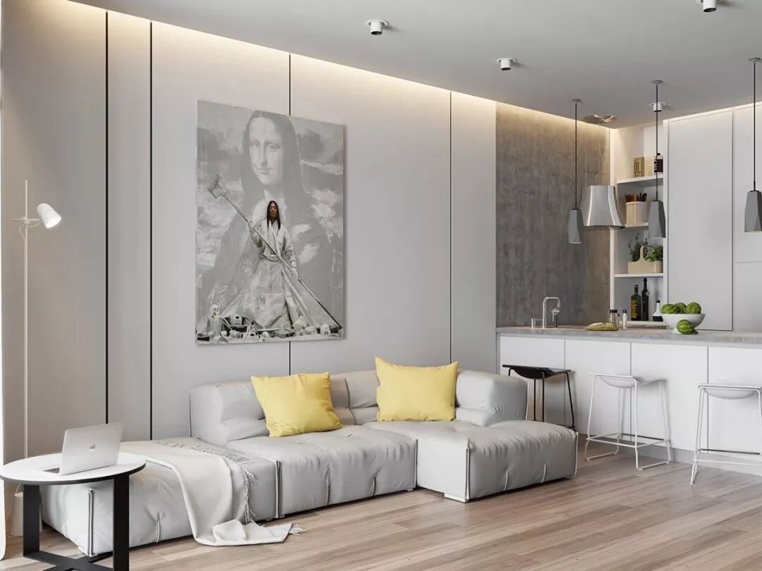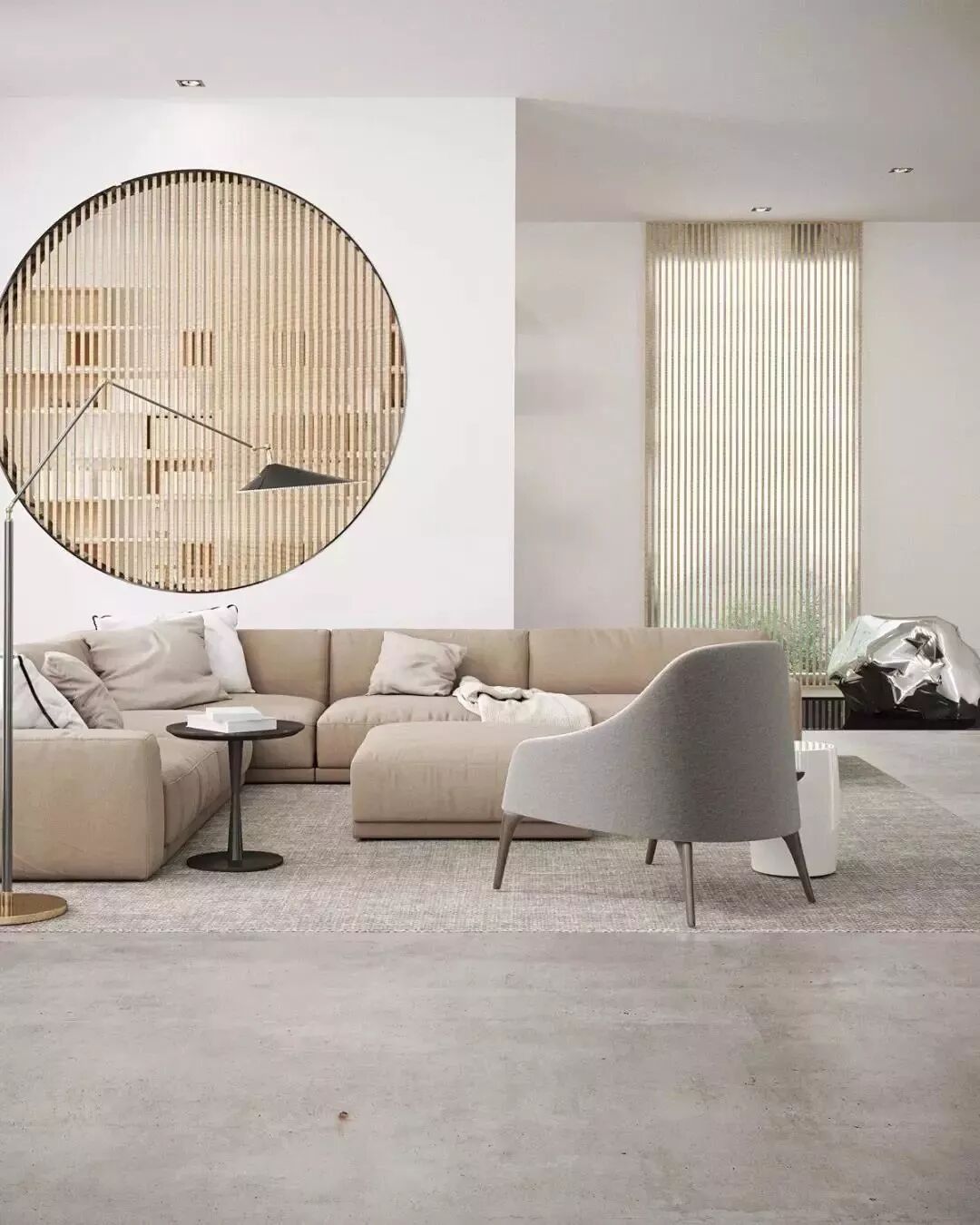 用书架/博物架做背景墙还可以作为隔断来使用同时具备装饰和实用的双重功能大幅的艺术画或者摄影照片搭配合适的照明别具格调有品位的艺术画能提升整个家装的气质也有沙发背景墙悬空不靠墙的留出一个过道将装饰或者隔断装饰靠墙显得更有层次感