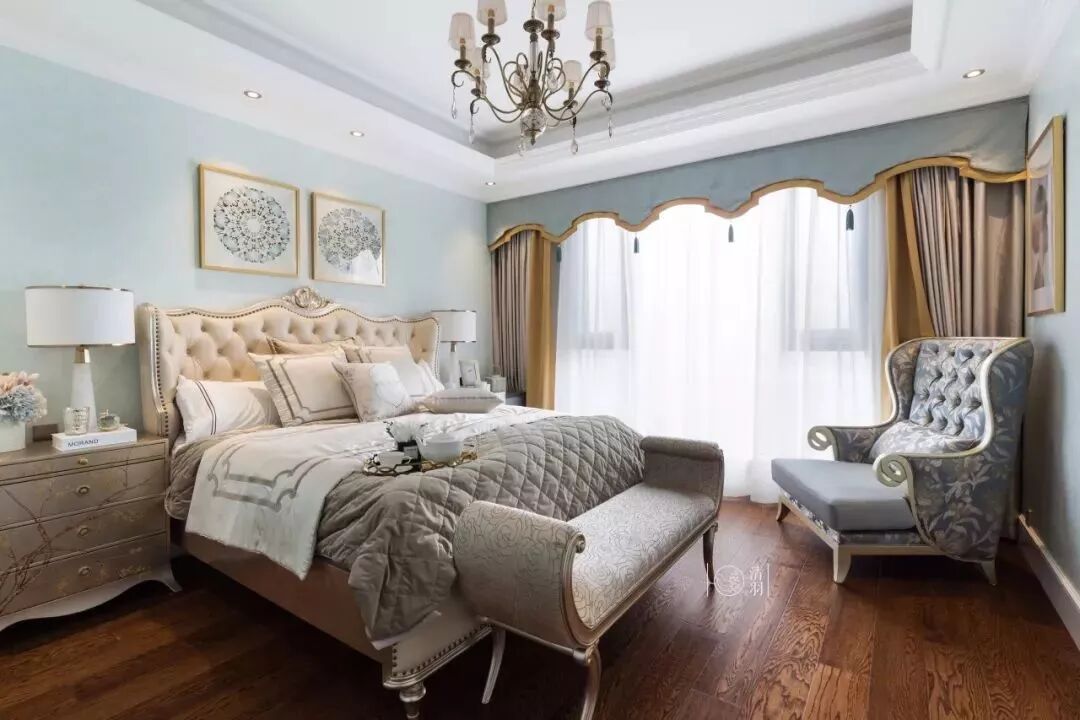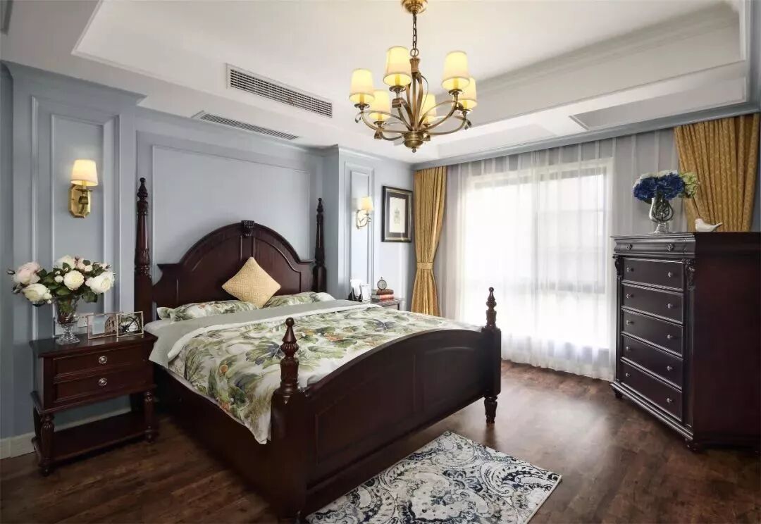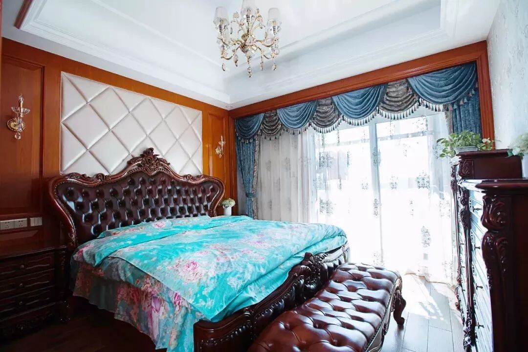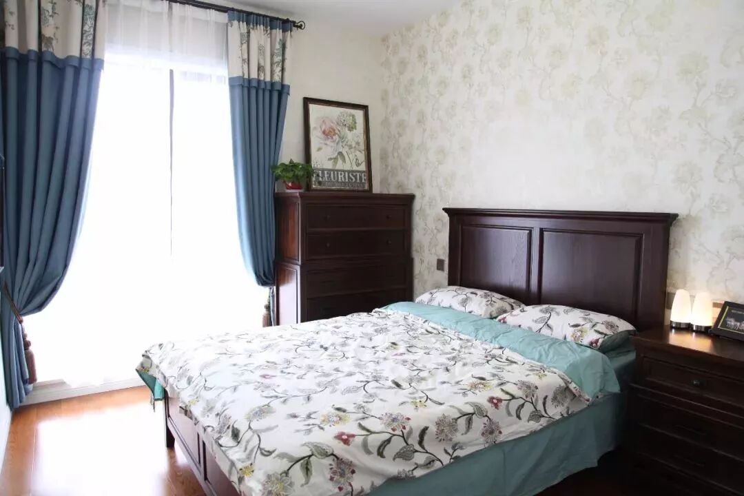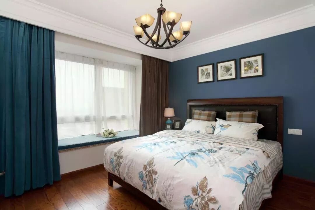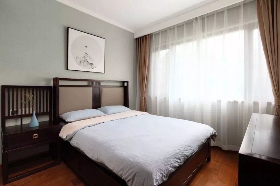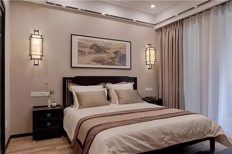 这类风格的设计元素通常以轻松舒适为主,浅色、素色与明亮的光线,是这个风格窗帘的搭配重心。 像北欧风这样简约文艺的装修风格,以纱帘或则带有精致图案的窗帘搭配,能使得整个卧室更加文艺雅致。 欧式风格的卧室窗帘,一般是以碎花、铜色、银色等元素图案或颜色搭配,整体贴近欧式的设计元素,显得华丽端庄跟高档。 这里的美式通常是指融入了中式文化的“现代美式”,现代美式风格的卧室窗帘,也是以蓝色、黄色、橙色等比较素雅的色调,整体给人以安静优雅的端庄设计感。 在硬装方面的端庄+软装的素雅,是中式风格常见的搭配。中式的窗帘选择比较多,通常也是以素雅的窗帘为主,整体给以与儒雅大方的视觉感。