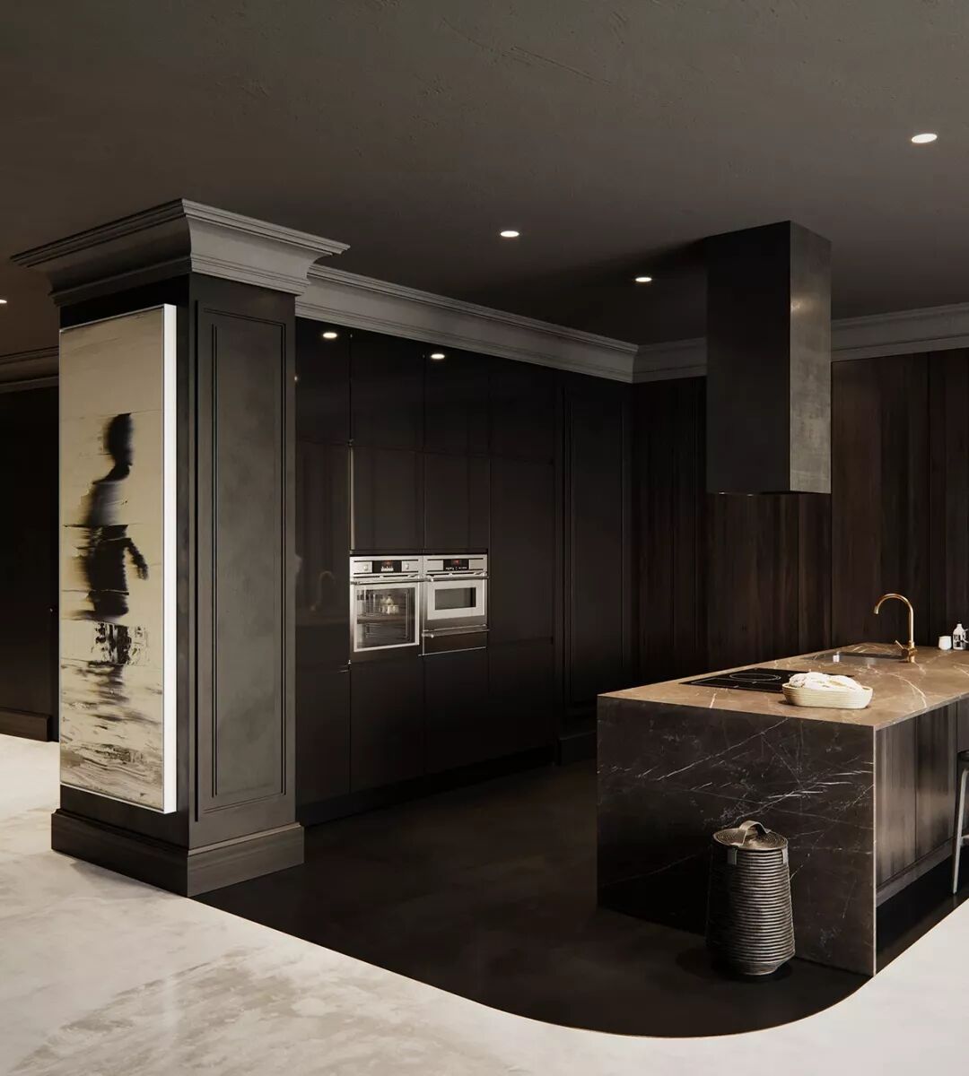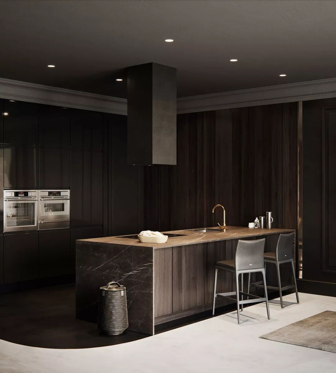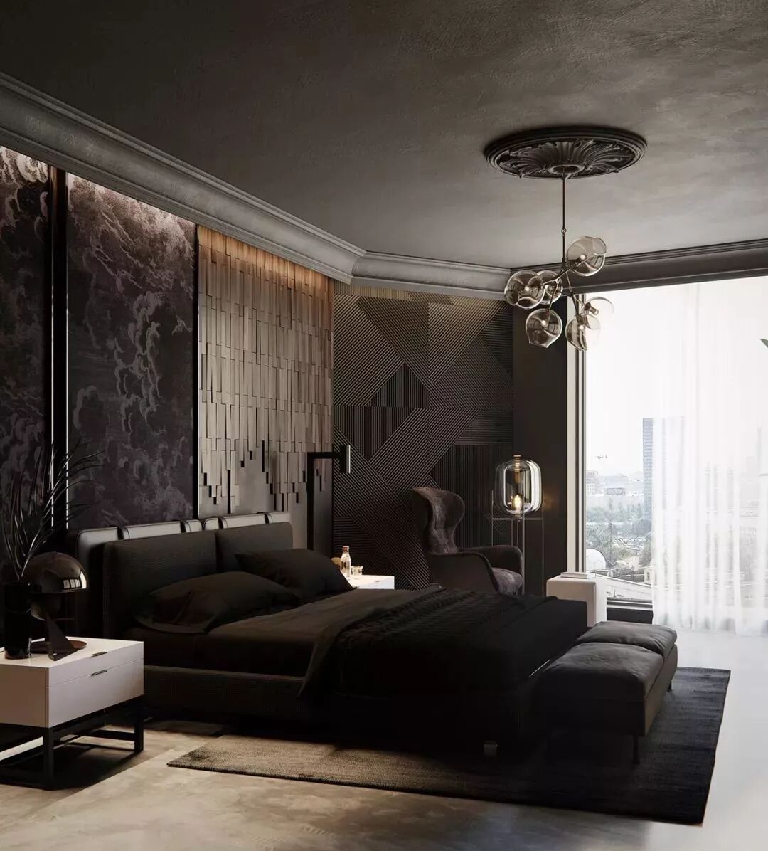 ▎这套案例,以轻古典风为主轴,结合各种材质的运用打造更为活泼的暗色空间,其中墙面装饰很好的突显了室内空间的环境层次及丰富立体感。
